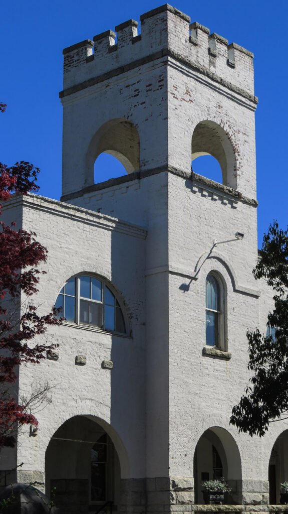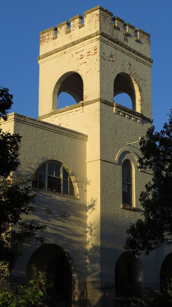 Modeled after “the old Norman and English castellated churches,”4 the building’s design can be broadly defined as Romanesque, and its focal point is a 50-foot-high crenellated bell tower,5 heavily inspired by similar designs from G.L. Norrman.