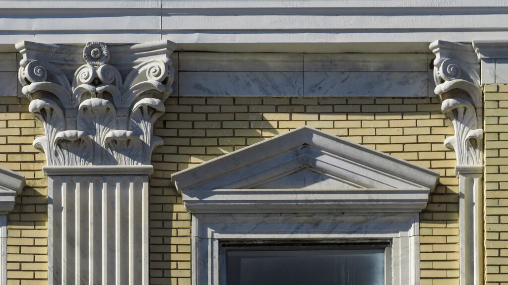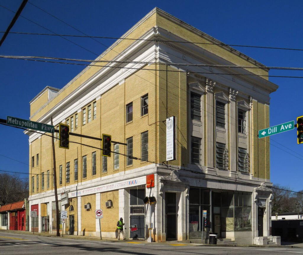 Francis P. Smith of Pringle & Smith. Capitol View Masonic Temple (1923). Capitol View, Atlanta.1234Windows on the east facade of the Capitol View Masonic TempleSouth facade of the Capitol View Masonic TempleLimestone facing and pediment on the southeast entrance of the Capitol View Masonic TempleDentilled cornice on the east facade of the Capitol View Masonic TempleCornice on the south facade of the Capitol View Masonic TempleCornice, frieze, and architrave on the east facade of the Capitol View Masonic TemplePilasters with Corinthian capitals on the east facade of the Capitol View Masonic TempleLimestone facing on the southeast entrance of the Capitol View Masonic TempleGround-floor store window on the south facade of the Capitol View Masonic TempleArch window on the south facade of the Capitol View Masonic Temple
