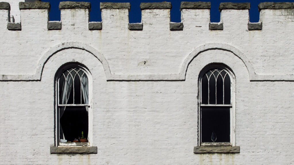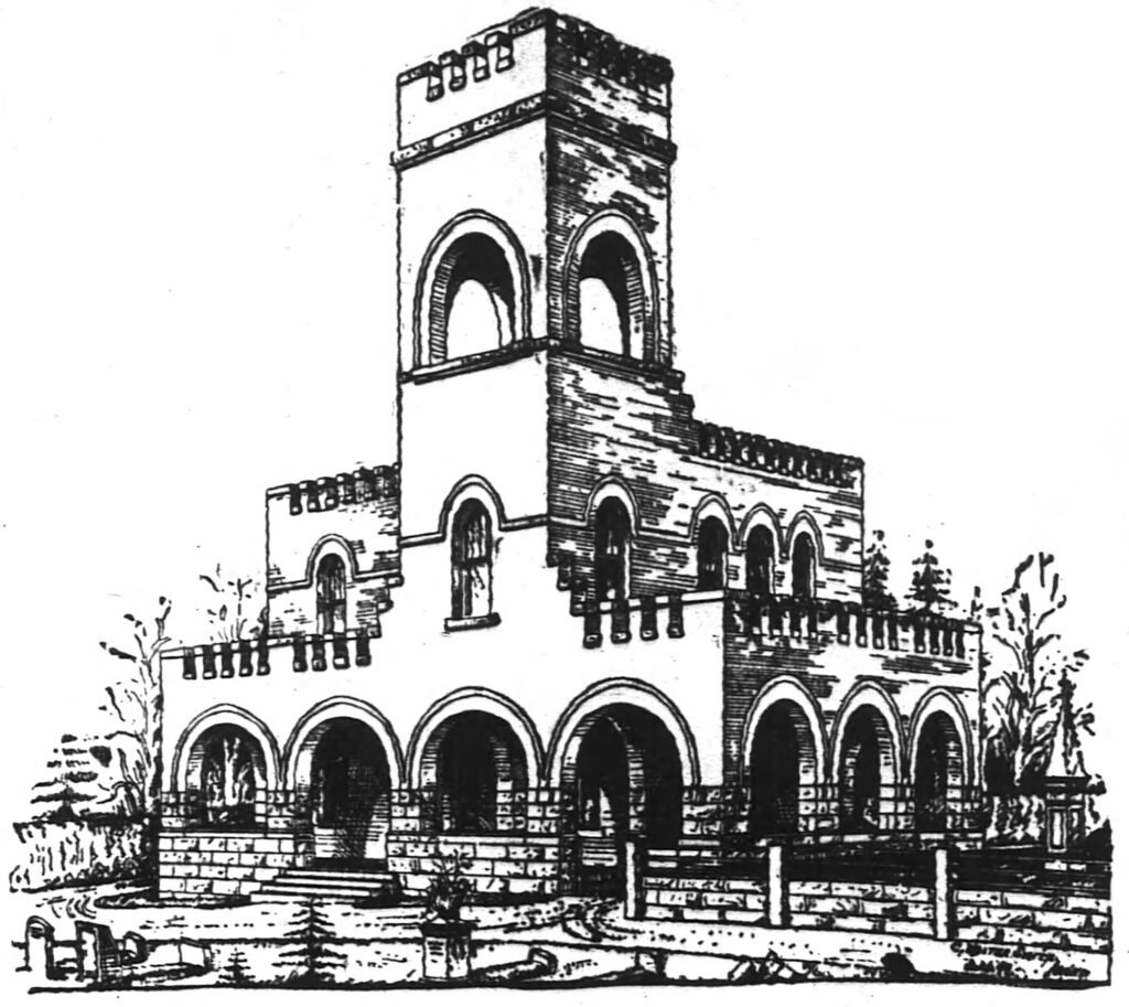 Roman arches on the porch and bell tower, and Gothic-style arched windows on the second floor completed the appearance of a small, storybook castle — again, Smith borrowed significantly from Norrman for the aesthetic.