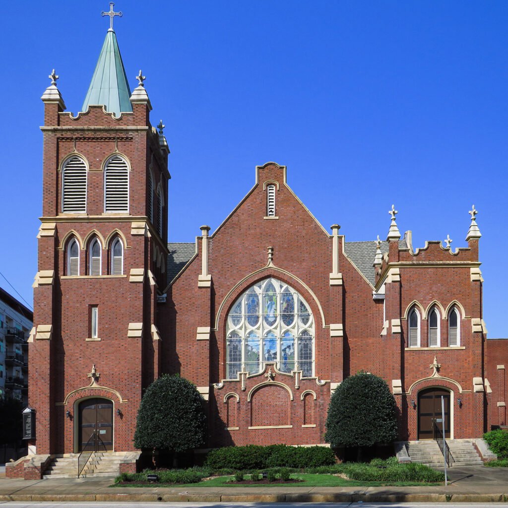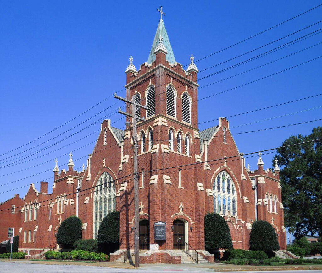 Today, only two of Parkins’ works in Atlanta are intact: the Catholic Shrine of the Immaculate Conception (1873) and Graves Hall (1890) at Morehouse College. Gaines Hall (1869) at Morris Brown College, a building supervised by Parkins from a Cincinnati firm’s design,48 was gutted by fires in 2015, 2023, and 2024495051 and is now a collapsed shell.