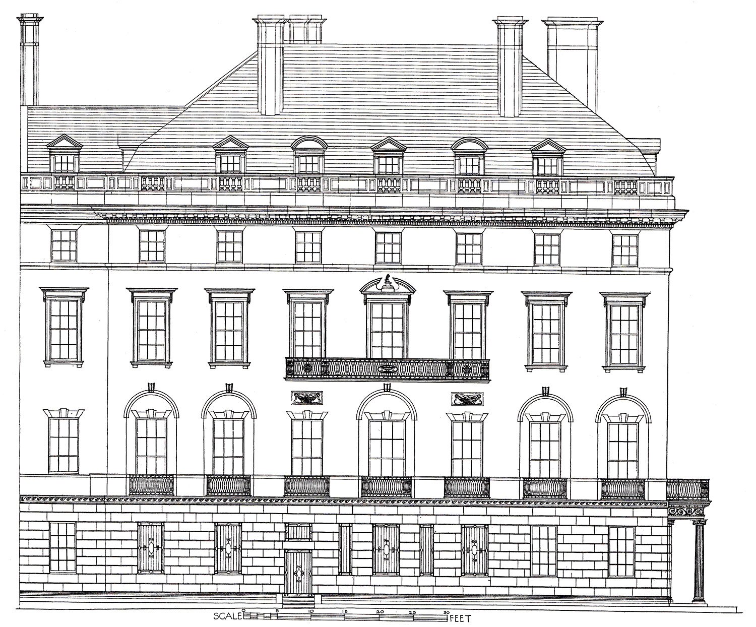 The home is officially credited to Charles McKim of McKim, Mead & White, but was primarily the work of his assistant, William M. Kendall, who began assuming design duties as McKim’s health deteriorated.1