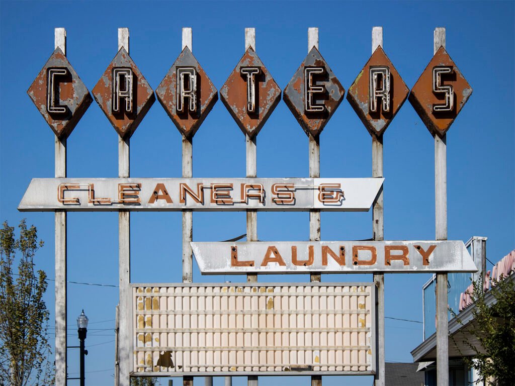 Carter’s Cleaners & Laundry in Forest Park, Georgia, opened in 1950. However, I suspect this fantastic Googie-style sign debuted in 1957, when the business expanded by 800 square feet,1 “providing a new front”,2 among other improvements.