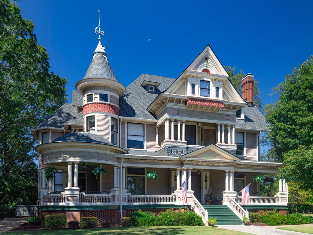 The home’s appearance was a simple but attractive expression of the Colonial style, with classical columns, dentilled cornices, a stringcourse between the floors, and a hip roof topped with dormer windows and decorative finials.