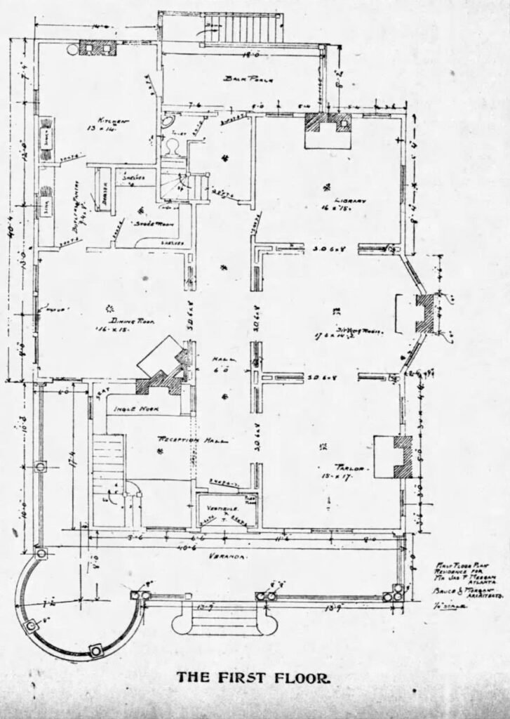 In 1879, he moved to Atlanta to partner with W.H. Parkins,9 Atlanta’s first professional architect, in the short-lived firm of Parkins & Bruce. Finally, in 1881, Bruce partnered with his longtime draughtsman, T.H. Morgan.10 11