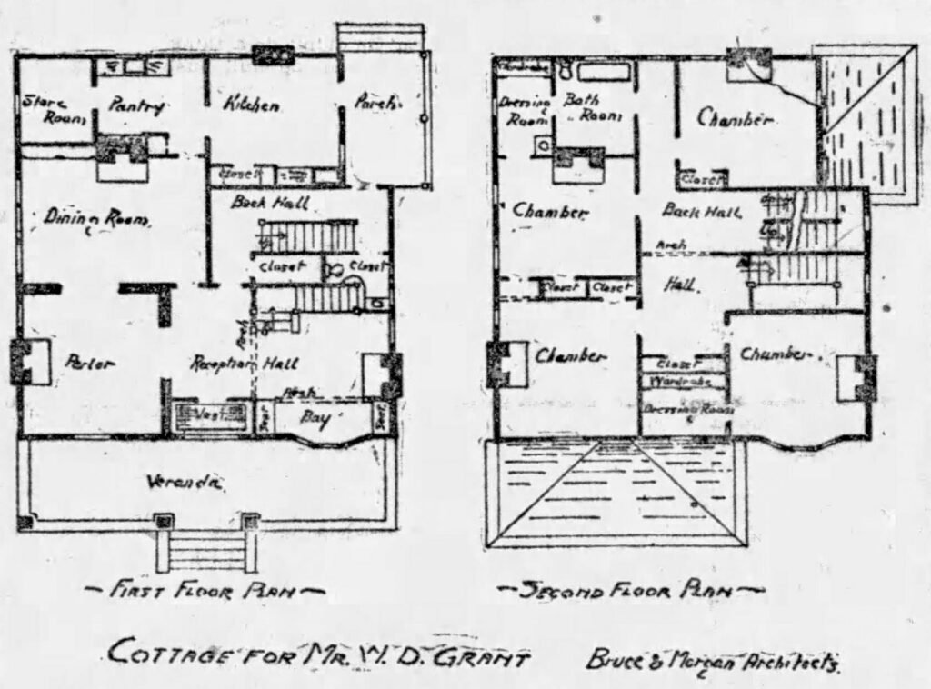 Here, the Journal highlighted a “model cottage” owned by W.D. Grant and designed by Bruce & Morgan. Grant was one of Atlanta’s wealthiest citizens, having amassed a fortune in railroad building before becoming a local real estate tycoon.1