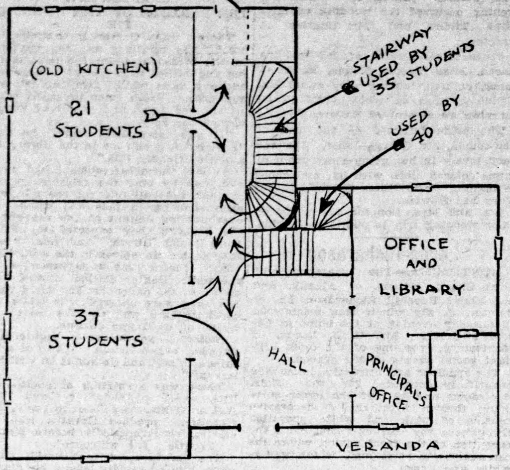 The same article included a rough sketch of the building’s floor plan (pictured below), which had been altered for school use but still hinted at Smith’s original design.