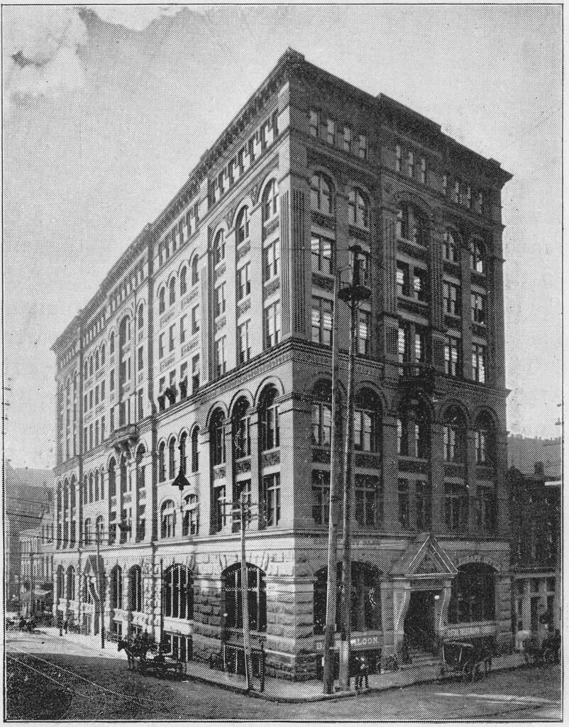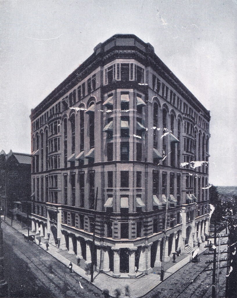 The 8-story Equitable Building was Atlanta’s first “skyscraper” when it opened in 1892. Built by Joel Hurt’s East Atlanta Land Company — a major client of G.L. Norrman‘s at the time — the Equitable wasn’t designed by Norrman but by John Wellborn Root of Burnham & Root2 in Chicago, one of the leading American architects of the era and a Georgia native.
