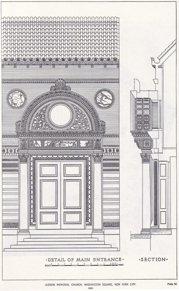 Stanford White of McKim, Mead & White. Judson Memorial Church, Sanctuary and Campanile (1893, 1896). Greenwich Village, New York.12345
