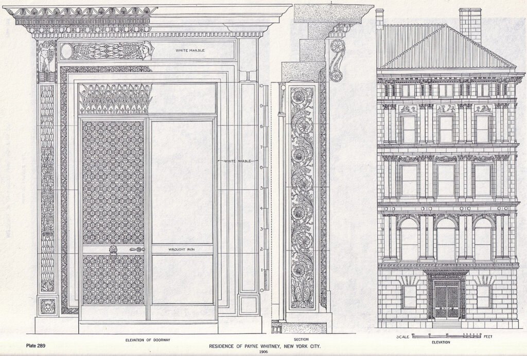 Stanford White of McKim, Mead & White. Henry Cook Residence (1907, left) and Payne Whitney Residence (1907, right). New York.