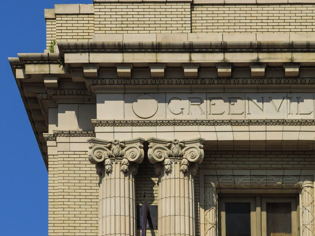 Architrave on the east facade of the Greenville County Courthouse References