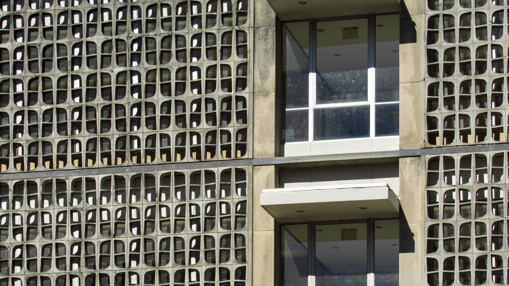 Screen wall on the south facade of the Van Leer Building
