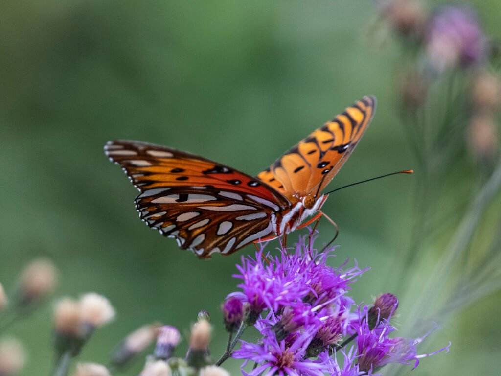 Gulf fritillary butterfly (Agraulis vanillae) Here’s a fine fall friend I recently met on the Atlanta BeltLine. Hooray for public arboretums!